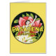 Imagen de etiqueta de equipaje de viaje con ilustración vintage que presenta a una mujer dentro de una hermosa flor de rosa rosa en el Desfile de Rosas el Día de Año Nuevo en Pasadena, California.
