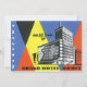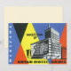 Ilustración vintage de un cartel de viaje europeo o etiqueta de equipaje del Grand Hotel Orbis, Varsovia. Polonia. Una serie de triángulos y diamantes en un patrón con una imagen arquitectónica de un edificio.