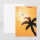 Viaje de ilustracion vintage e imagen de transporte con un avión volando sobre una silueta de una palmera y un pequeño mapa de Hawaii y las Islas Hawái. El cielo es un hermoso color naranja con la puesta de sol.
