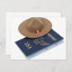 Gorra montañés hecho de fieltro con los pliegues tradicionales en la parte superior y una bandera en el borde y un pasaporte