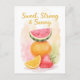 Envía un estallido de sol con esta alegre tarjeta postal de verano que presenta jugosas frutas de acuarela y una cálida y estimulante vibra. La parte delantera muestra vibrantes ilustraciones de sandía, naranja y fresa pintadas a mano, mientras que la parte trasera incluye un mensaje QR juguetón — “Escanea para explorar vibraciones soleadas 🍉” — invitando al destinatario a descubrir más de tu colección.