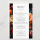 Eleva tu boda en el jardín con nuestra encantadora tarjeta de menú Boda, diseñada artísticamente con colores vivos y audaces ambientados en un cautivador fondo oscuro. Con los nombres de la pareja destacados en una elegante fuente serif, esta carta le invita a personalizar el texto con sus delicias culinarias seleccionadas. Perfecto para los que ven su día especial rodeado por el encanto romántico de un jardín, esta carta mezcla la belleza de la naturaleza con un sofisticado diseño, asegurando una experiencia gastronómica memorable para usted y sus huéspedes. Ideal para parejas que buscan una armoniosa mezcla de color, elegancia y toque personal en sus detalles bodas.