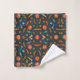 Colorful geometric pattern on a dark background, featuring various shapes like circles, eyes, and zigzags. Vibrant orange, teal, and yellow tones.