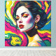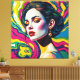 Esta obra de arte digital, una fusión fascinante de retrato y surrealismo, presenta a una mujer llamativa bañada en audaces tonos de neón contra un telón de fondo cósmico de ensueño. Ideal para los amantes del arte contemporáneo psicodélico, futurista y vibrante