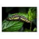 Fotografía de una mariposa malaquita sobre una hoja en un jardín.