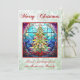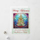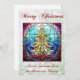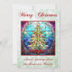 Vidrio brillante y brillante de diseño de un árbol de Navidad multicolor en un marco rojo. Con un fondo purpurina verde pálido y "Feliz Navidad". Puede cambiar el saludo personal del personalizable al final del diseño a su propio mensaje.