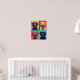 Esta obra de arte, "Vibrantes retratos de perros de arte pop", cuenta una fascinante historia de cuatro alegres personalidades caninas, cada una celebrada con el atrevido e icónico estilo de Andy Warhol. Es un homenaje moderno al vínculo atemporal entre los humanos y sus compañeros peludos, reimaginado a través de la lente dinámica del arte pop. Lo que hace esta pieza verdaderamente especial es su vívida fusión de un movimiento de arte clásico con un tema universalmente querido. En lugar de un solo retrato, esta pieza presenta un convincente quad de casquillos caninos dentro de una cuadrícula de 2x2, el carácter único de cada perro resaltado por un fondo diferente de neón brillante —desde rosa eléctrico hasta verde lima, cian y naranja caliente. Los elementos geométricos en capas, como las rayas diagonales, los círculos y los triángulos, crean una sensación de energía y profundidad vibrantes, mientras que los contornos negros gruesos y el sombreado de alto contraste le dan un efecto cómico y lúdico. Esta no es solamente una foto de cuatro perros; es una celebración de su alegría, lealtad y espíritu individual, presentada en una composición perfectamente simétrica y lista para posters que es a la vez una declaración de estilo moderno y un sincero asentimiento a los amantes de las mascotas en todos nosotros.