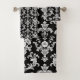 This luxurious bath towel set features a timeless Victorian-inspired design. The elegant black and white damask pattern adds a touch of sophistication to any bathroom. These high-quality towels are incredibly soft and absorbent, providing a comfortable and pampering experience after every bath or shower. Perfect for adding a touch of classic beauty and refined style to your home.