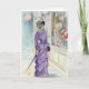 Este diseño presenta a una hermosa mujer de la era victoriana vestida con un vestido morado con una sombrilla, una ventana de compras para gorras. Hermoso arte vintage.