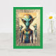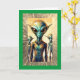 En la parte delantera de esta tarjeta hay una forma de vida extraterrestre en un entorno extraño. A la izquierda hay una torta de cumpleaños y se presenta con tres formas de vida extraterrestre con sentimientos verdes usando gorras de cumpleaños. A la derecha está "40?, "Fascinante" para los que cumplen 40.