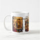 Taza de café que ofrece las pinturas de escenas importantes a partir de la vida del santo Juana de Arco. Pinturas clásicas presentadas de una manera estilizada.