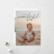 Celebre la alegría de la temporada con esta tarjeta plana de vacaciones de 3 fotos, perfecta para mostrar una foto familiar especial o una imagen de su bebé o hijo. La parte delantera presenta una foto de tamaño completo con una superposición de texto elegante que dice "Es una vida maravillosa", ofreciendo un mensaje de gratitud y alegría navideña. En la parte posterior, hay espacio para dos fotos más orientadas al retrato y una firma, con texto elegante que dice "Deseándole una maravillosa temporada navideña". El color de fondo es blanco, pero puede personalizarlo fácilmente para que coincida con sus fotos y darle un toque personal.