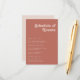 Las simples vigas retro | el antiguo horario de eventos de la tarjeta del recinto es perfecto para su boda de tonalidades de tierra vintage. El diseño presenta una minimalista fuente hippie rústica tipo boho. La paleta de colores neutros del desierto del suroeste y las letras bohemias de mediados de siglo se combinan para un diseño perfecto y minimalista moderno de destino occidental. No dudes en cambiar el color y añadir tu propia obra de arte, gráficos o fotos. Si tiene alguna pregunta sobre el diseño de este producto, por favor, no dude en ponerse en contacto con nosotros.