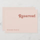 Las simples vigas retro | el signo de reserva color rosa negro es perfecto para su boda de tonalidades de tierra vintage. El diseño presenta una minimalista fuente hippie rústica tipo boho. La paleta de colores neutros del desierto del suroeste y las letras bohemias de mediados de siglo se combinan para un diseño perfecto y minimalista moderno de destino occidental. No dudes en cambiar el color y añadir tu propia obra de arte, gráficos o fotos. Si tiene alguna pregunta sobre el diseño de este producto, por favor, no dude en ponerse en contacto con nosotros.