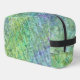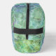 Una versión moderna de mediados de siglo: formas atómicas superpuestas sobre una raya digital en verdes brillantes y azules frescos.