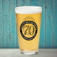 Vidrio de cerveza de la celebración del cumpleaños 70 o vaso de bebida con el nombre y el cumpleaños.
