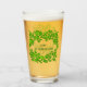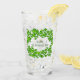 Este vidrio transparente tiene un patrón de rocas de champú / trébol circular en verde tanto en la parte delantera como en la trasera. Texto del Feliz Día de San Patricio escrito dentro del oval. Personalizar este artículo o compra como se muestra.