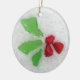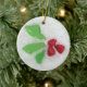 Tres el acebo rojo "bayas" del leche-vidrio y 3 el verde "hojas" en nieve real hace este ornamento de cerámica hermoso una adición maravillosa a su árbol. ¡Consiga uno para sí mismo, y dé uno como regalo!