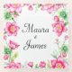diseño de borde floral con hojas verdes exuberantes, flores rosas vibrantes, detalles intrincados de pétalos, elegante y festivo, fondo blanco, ideal para enmarcar texto o fotografías