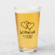 Vidrios de consumición dobles de encargo del corazón para el banquete de boda, el compromiso, la ducha nupcial, el fiesta del bachelorete, la despedida de soltero o el aniversario. El favor de fiesta romántico para los pares casados, novia y novio, marido y esposa, se casa nuevamente, los amigos, los presentes personalizados etc. del amor de la familia para él y ella. El diseño del símbolo del corazón que entrelaza con el cepillo elegante script la plantilla de la tipografía. Vidrios elegantes del diseño para las bebidas como la cerveza, los cócteles y más. Ideas únicas del regalo para apenas los pares y las huéspedes casados. También disponible como vaso de medida. Añada su propio logotipo opcionalmente y ordénelo en bulto. Cargue su imagen a esta plantilla y corrija el texto. Añada los nombres y la fecha de la boda más cita.