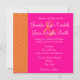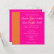 Una divertida invitación de bodas de verano con un patrón de vieiras naranja a lo largo del margen izquierdo de la invitación y un brillante fondo rosa caliente con letras blancas. La parte posterior de la invitación también es rosa picante. Si necesita cambiar el tamaño o la fuente del texto, puede utilizar el botón "Personalizar" para mover las cosas, cambiar el tamaño del texto y personalizar completamente. De lo contrario, si desea el diseño y la fuente como es, simplemente introduzca los detalles de su boda en los puntos de plantilla. Tarjetas RSVP matrimoniales disponibles por separado.