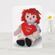 Vintage rag doll con corazón de hilo rojo para el amor de la amistad. El texto sobre el corazón es editable.