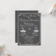 Vieja invitación a la boda en pizarra con labios y bigote.