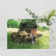 Este antiguo camión jalopy situado en un campo de hierba de la casa es la invitación perfecta para el clásico taxista o el viejo, personalizable para cualquier ocasión que incluya un cumpleaños histórico, jubilación, aniversario, etc. Este viejo y oxidado chica se parece mucho a la gente de los clásicos y viejas épocas - un poco gastado en los bordes y desmoronándose.