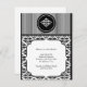 Este hermoso diseño, llamado damasco Old Hollywood, sería una manera elegante y dramática de fijar el tono para su fiesta o acontecimiento elegante. El fondo en el top es una tela a rayas blanco y negro con un medallón que destaca un gráfico del damasco en blanco. El fondo en la parte inferior es un modelo negro del damasco en blanco con una inserción blanca para su texto. ¡Perfeccione para cualquier ocasión!