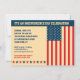 Esta invitación muestra la bandera de los Estados Unidos de una manera diferente colgando verticalmente de la bandera azul encima con el campo de estrellas colgando a la izquierda contra un fondo moderno de color crema. Una bandera azul rica muestra el mensaje del Día de la Independencia con todo el texto impreso a la izquierda de la bandera. Una fila de estrellas en rojo y azul acaba de la invitación. Ideal para una barbacoa, fiesta de piscina o lo que sea que pueda traer el 4 de julio. Disponible con productos coincidentes.
