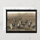 Una reproducción de una antigua postal de caballos de carreras en su camino al inicio del curso Rowley Mile en Newmarket.