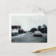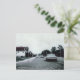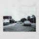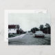 Imagen tomada en 1965 de un auto vintage que conduce por la carretera a través de un pequeño pueblo. Personalizar esta tarjeta con su propia información!