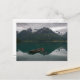 Postal de un viejo bote de remos en un lago con el reflejo de las montañas en el agua estancada, Hjelle, Noruega.