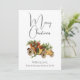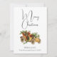 Tarjeta de navidad merry de estilo vintage con un auto amarillo anticuado y mistletoe blanco. Con un precioso tipo de letra de guión y personalizado con el nombre de su familia o cualquier texto personalizado que desee incluir en esta temporada navideña.