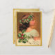 Postal del navidad del chica del acebo del día de fiesta del vintage.