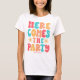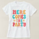 ¡Dejen paso a la fiesta nupcial groovy con nuestro divertido diseño de camiseta personalizada 'Aquí viene la novia'! Este diseño inspirado en el retro cuenta con una explosión de color y tipografía caprichosa que te lleva de vuelta a la era groovy. Perfecto para despedidas de soltera, fiestas de compromiso, o simplemente para celebrar los próximos esponsales con estilo.