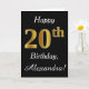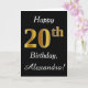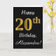 Características del este de cumpleaños diseño simples de tarjeta el mensaje "vigésimo cumpleaños feliz", con el "vigésimo" teniendo un falso oro-como aspecto. También ofrece un nombre de encargo, y un fondo negro. Podría ser dado alguien que está celebrando su vigésimo cumpleaños.