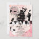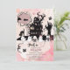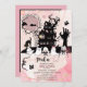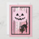 ¡Prepárate para una hermosa ducha de bebé! Esta caprichosa invitación a "Peek a Boo" incluye una encantadora casa embrujada y una dulce alineación de fantasmas y un gato negro. La paleta de colores rosa y negro es de tendencia y perfecta para celebrar un nuevo ghoul o goblin. En la parte trasera hay el mismo gato y una calabaza colocada sobre un bonito fondo de color rosa con líneas ornamentales.