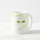 Un par de ojos verdes vigilantes que miran a través de las hojas.