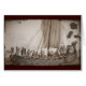 Vintage ilustracion del siglo XIX de una lancha vikola. Imagen dibujada a mano de vikingos remando un bote enchapado. Obra de Anker Lund.