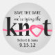 Asegúrate de que tus amigos y tu familia SALVEN LA FECHA con un nudo de amor de corazón rosado bonito por el "O" en el texto KNOT. Personalizable TIRANDO LOS pegatinas KNOT para su día especial.