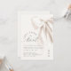 Esta sofisticada invitación cuenta con una clásica proa blanca de marfil y un romántico guión manuscrito, perfecto para una moderna y caprichosa ducha de novia. El elegante diseño, con una cinta de satén de marfil y el encanto de la coqueta, le da un toque de clase a su evento. Personalizar el texto para que coincida con los detalles del evento y cree una invitación eterna para su día especial.