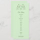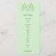 Las viñas de flores blancas forman un corazón sobre fondo verde menta. Personalizar este elegante menú de varios platos para su cena en Bridal Shower, Boda o para el ensayo.