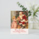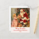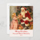 Santa llegó a la Noche de los Navidades con regalos maravillosos para esta niña encantada. Este cuadro vintage representa un bonito marco de acuarelas con Santa sonriente en su traje clásico rojo y el niño más agradable con un maravilloso vestido rosa de época. Un árbol de Navidad tradicional con regalos envueltos de colores está a su lado. Todos los textos de esta postal, incluyendo "Feliz Navidad" son editables. Asegúrese de editar los nombres y la fecha.