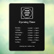 Mantenga informados a sus clientes con este vinilo negro personalizado para ventanas de negocios. Perfecto para tiendas, restaurantes, cafeterías, salones y oficinas, este diseño profesional muestra claramente sus horarios de apertura y logotipo comercial. Fácil de aplicar y quitar, esta señal de ventana duradera es una forma sencilla pero efectiva de hacer que su fachada se destaque mientras mantiene visibles sus horas.
