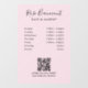 Mejora la fachada de tu tienda con nuestro vinilo para ventana minimalista con fondo rosa muy claro. Personaliza con tu nombre, título, horario de atención, código QR y detalles de contacto para un toque personalizado. Perfecto para agregar un look profesional y moderno a tu negocio.