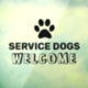 Vinilo o letrero transparente y negro de bienvenida a perros de servicio para cualquier negocio, tienda, café, restaurante, barbería, salón, hotel, panadería, etc.