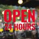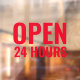 Vinilo Rojo Moderno Abierto 24 Horas para Ventana