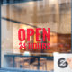 Haga que su negocio de 24 horas se destaque con este vinilo rojo audaz para ventana con el mensaje “Abierto 24 Horas”. Diseñado para máxima visibilidad, este letrero duradero para escaparate es perfecto para restaurantes, gasolineras, tiendas de conveniencia, gimnasios y otros establecimientos abiertos las 24 horas. Impreso con una base blanca opaca para un color brillante y un impacto duradero, este vinilo se aplica fácilmente a ventanas y puertas de vidrio