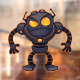Personalizado vectorial ilustracion de un robot enojado preparándose para la batalla. Este robot medio y desagradable es gris oscuro con ojos naranjas y resalta. Etiquetas: robot, droid, androide, guerrero, batalla, gladiador, lucha, medio, enojado, loco, naranja, negro, máquina, futuro, inteligencia artificial, personalizado, vector, desagradable, ciboro